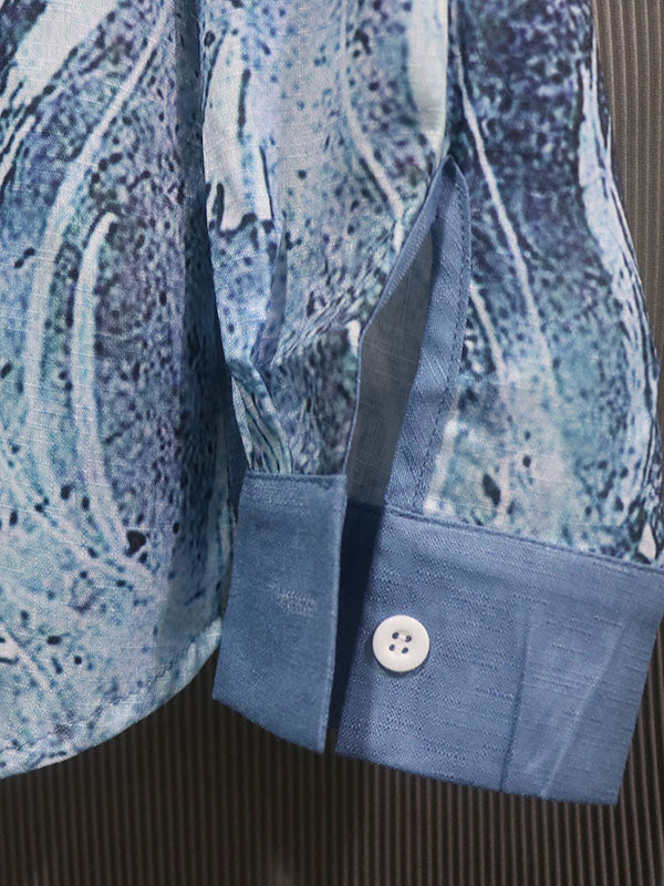 Stylish Asymmetric Floral Printed Lapel Long Sleeves Blouse Tops