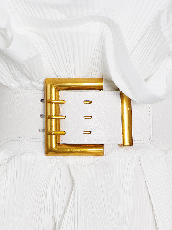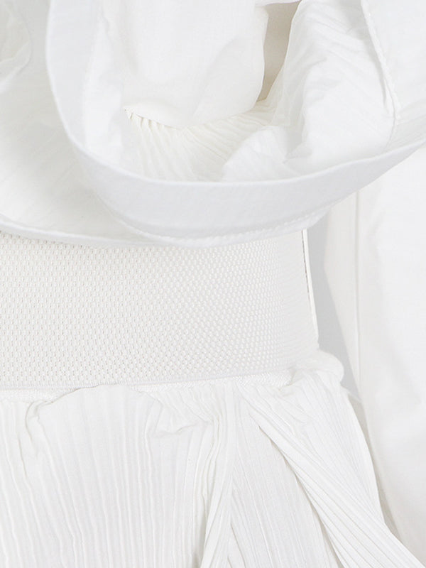 Stylish Loose Long Sleeves Buttoned Falbala Belted Solid Color Stand Collar Blouses&Shirts Tops