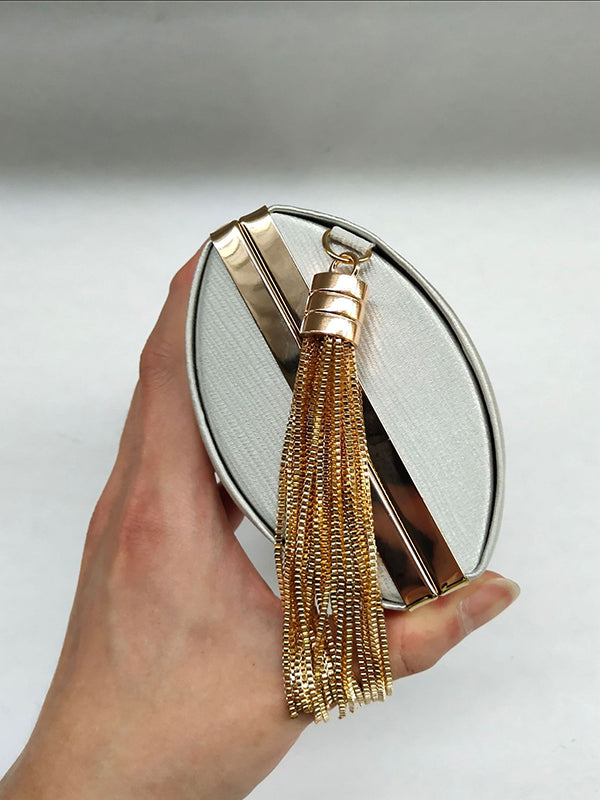 Sacs à main de banquet à pompons de couleur contrastée avec chaînes
