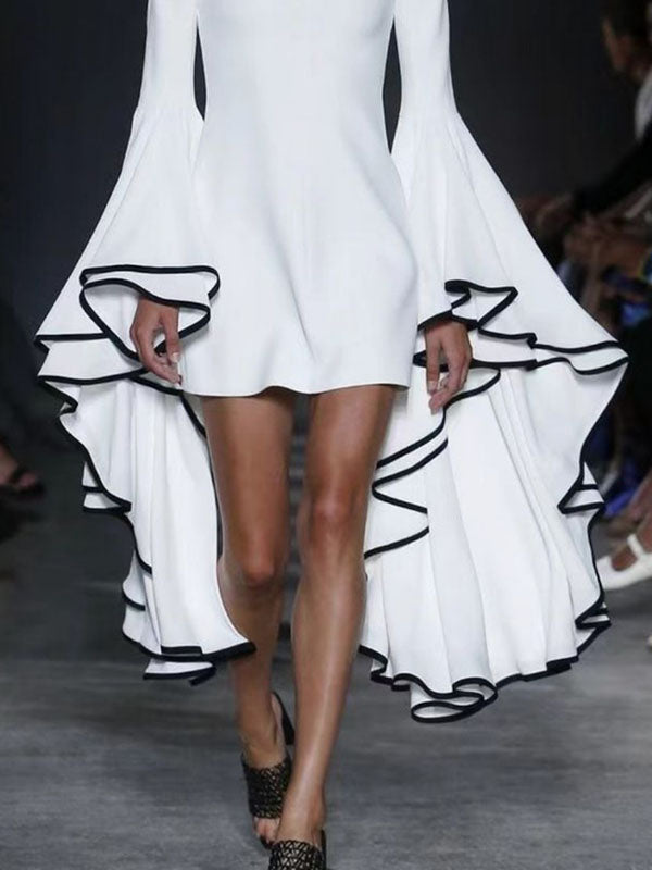 Mini-robes à manches évasées et manches longues, couleur unie, col montant