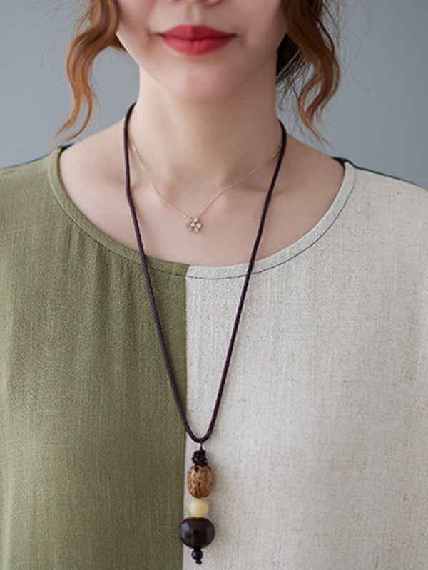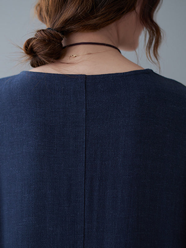 Robes mi-longues amples à manches mi-longues et col rond de couleur contrastée