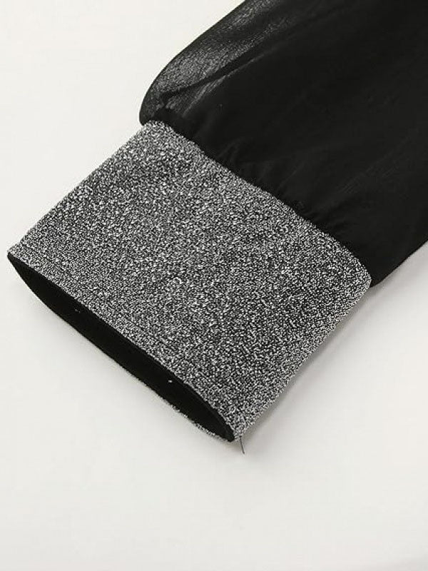 Mini-robes à manches longues, amples, élastiques, transparentes, fendues et à col en V