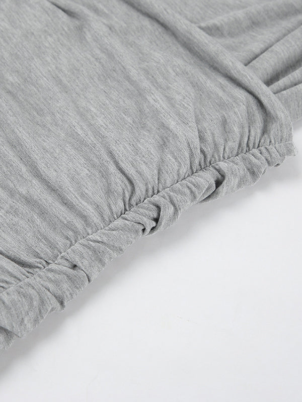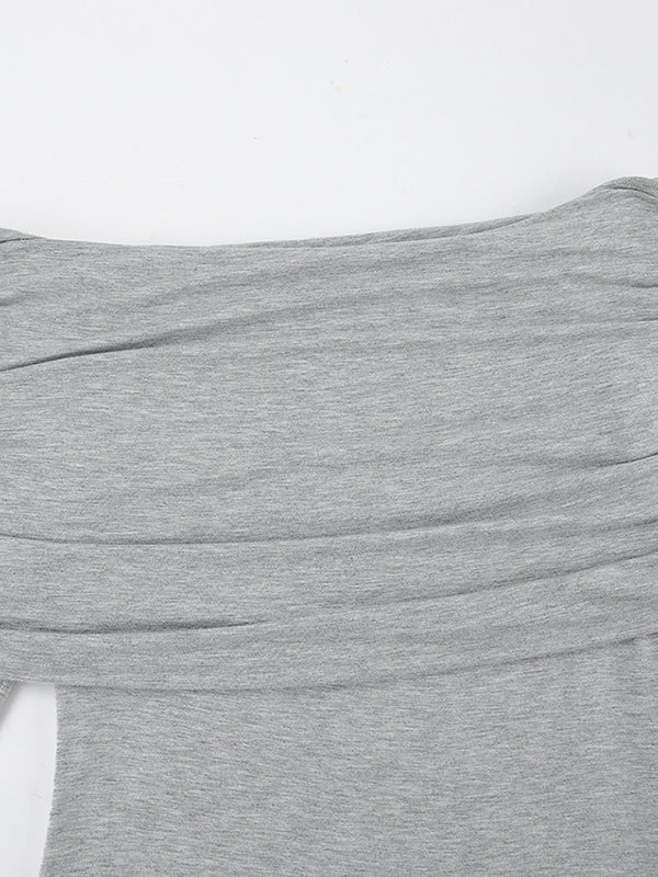 Robe de soirée longue à manches longues, plissée, moulante, couleur unie, fendue, épaules dénudées