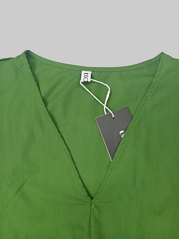 Robe longue ample à manches courtes et poches plissées, couleur unie, col en V fendu