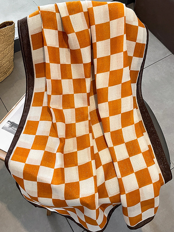 Écharpe imprimée à carreaux de couleur contrastée simple et tendance