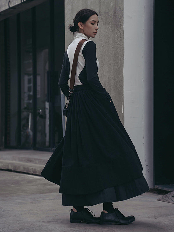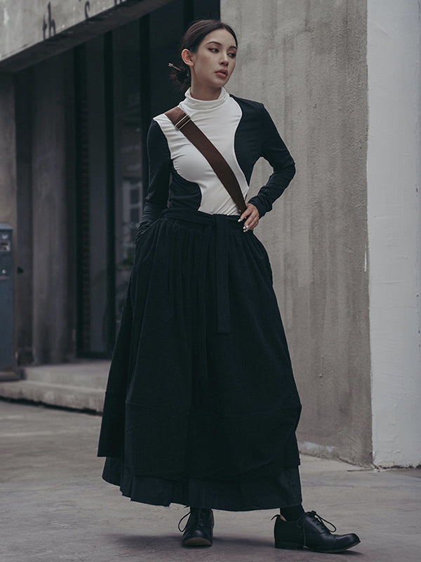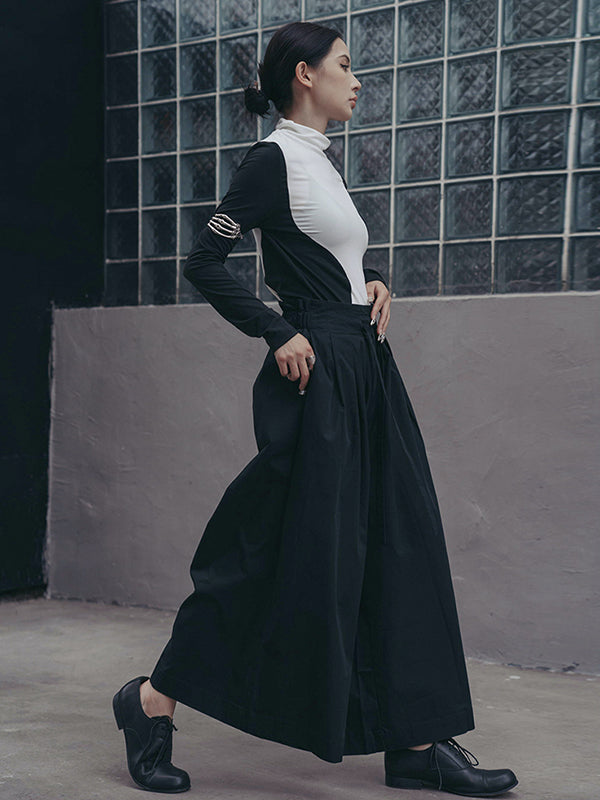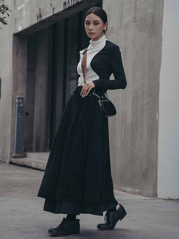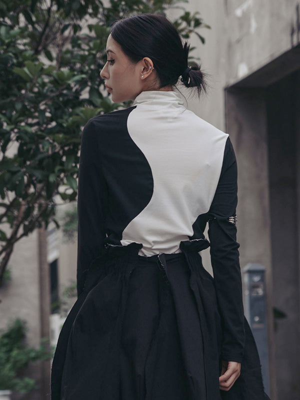 T-shirts urbains skinny à manches longues et col montant asymétriques contrastés