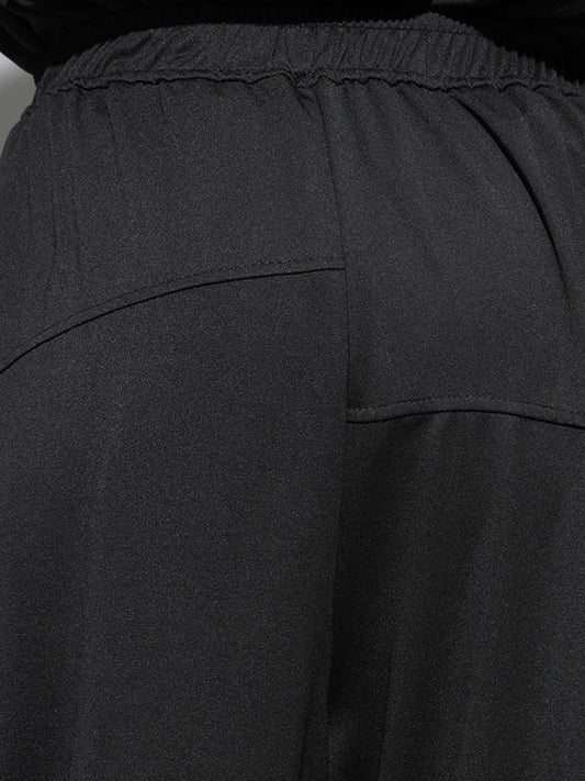 Harem Pants Loose Elasticity Pleated Pockets Solid Color Split-Joint Pants