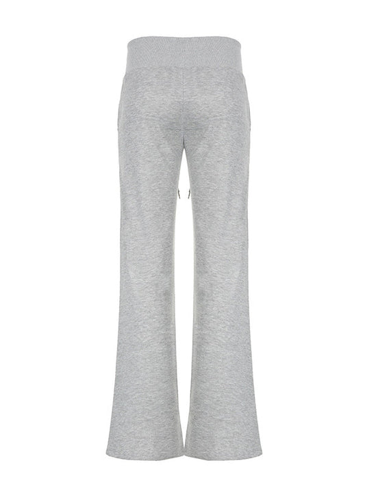 High Waisted Loose Drawstring Elasticity Solid Color Split-Joint Pants Trousers