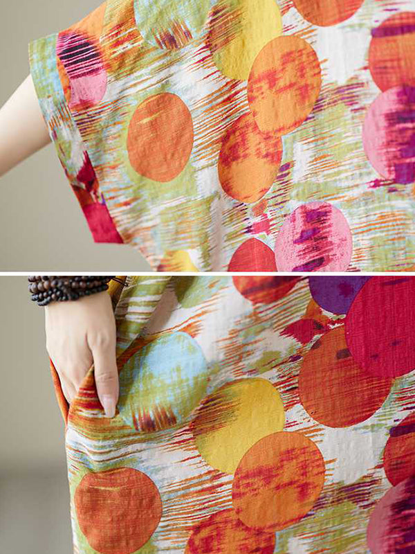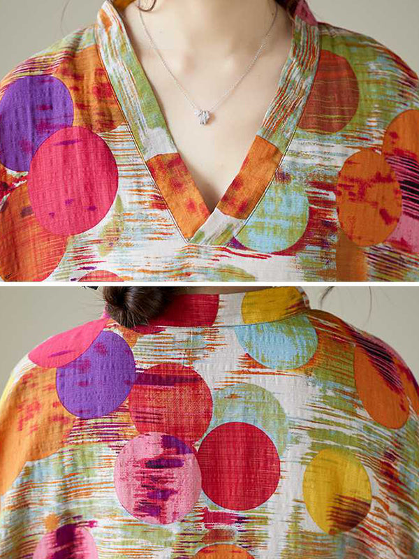 Batwing Sleeves Half Sleeves Contrast Color Polka-Dot V-Neck Maxi Dresses