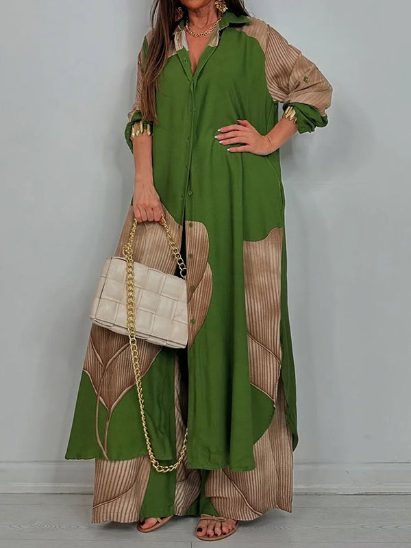 High Waisted Wide Leg Drawstring Elasticity Floral Printed Split-Joint Pants Trousers