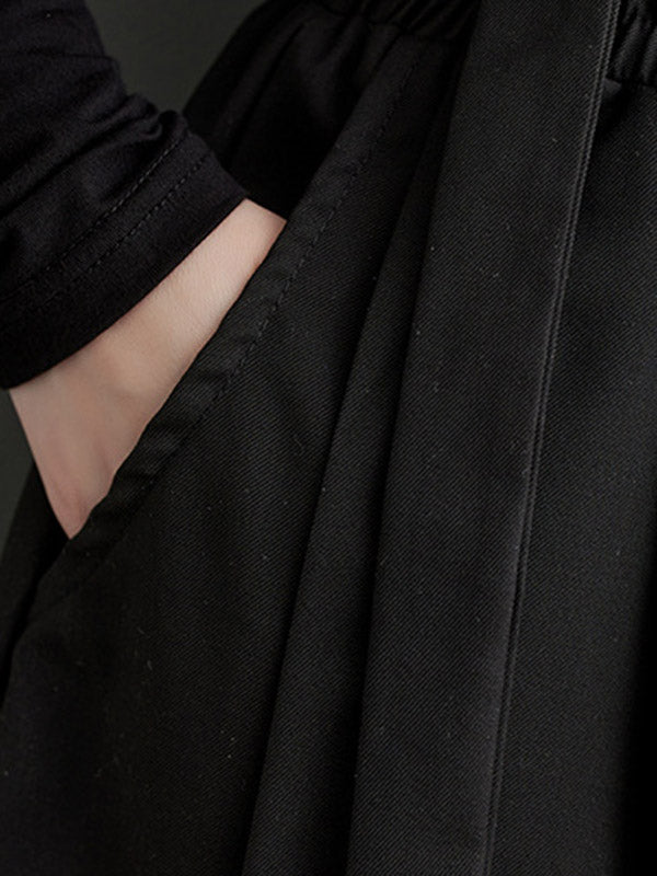 High Waisted Wide Leg Elasticity Pleated Solid Color Split-Joint Streamer Pants