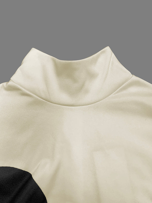 Long Sleeves Loose Pockets Polka-Dot Mock Neck Midi Dresses
