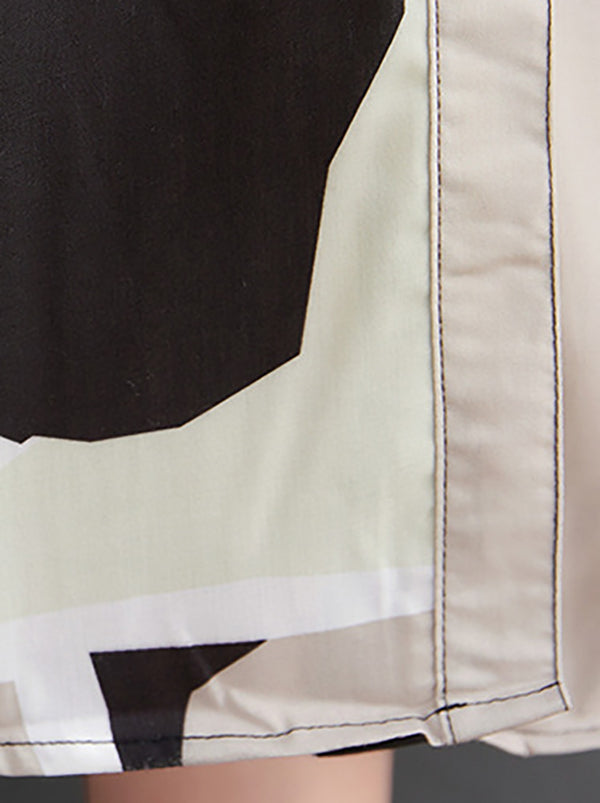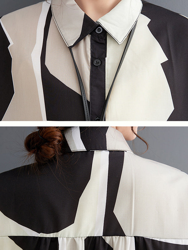 Loose Oversize Color-Block Printed Lapel Midi Dresses Shirt Dress