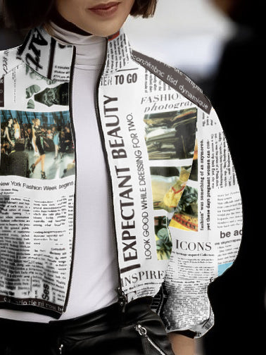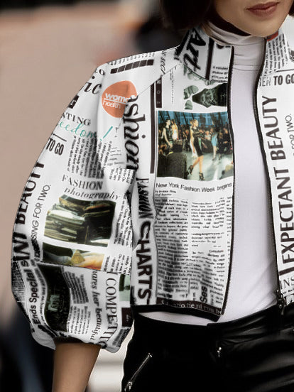 Loose Puff Sleeves Letter Print Stand Collar Outerwear