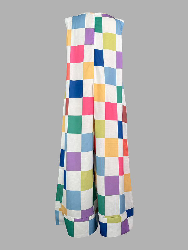 Loose Sleeveless Contrast Color Plaid Shoulder Pad Jumpsuits