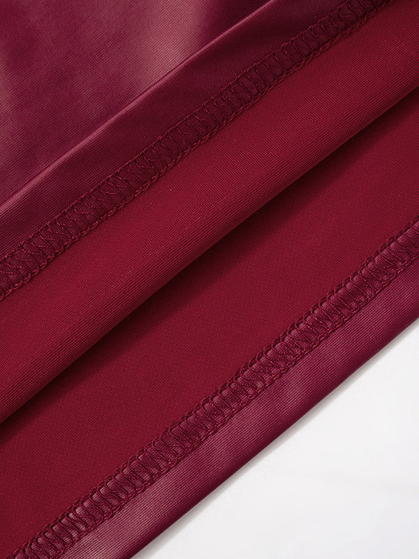 Skinny Sleeveless Shiny Solid Color Split-Joint Spaghetti-Neck Vest Top