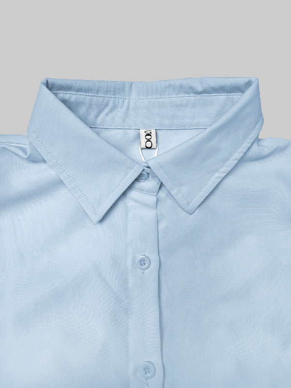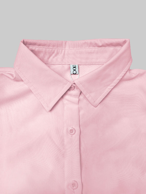 A-Line Long Sleeves Layered Pleated Pockets Solid Color Split-Joint Lapel Midi Dresses Shirt Dress