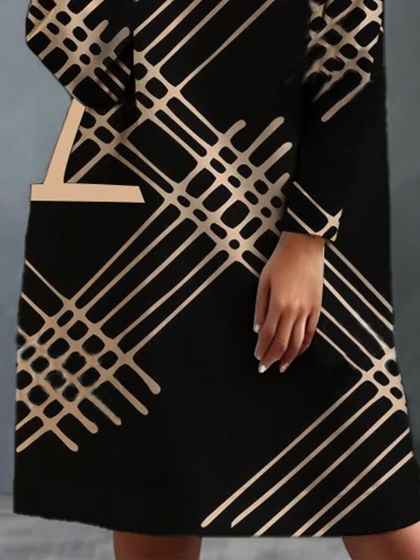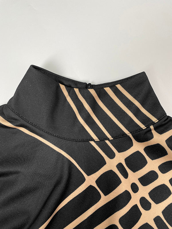 A-Line Long Sleeves Pockets Printed High Neck Mini Dresses