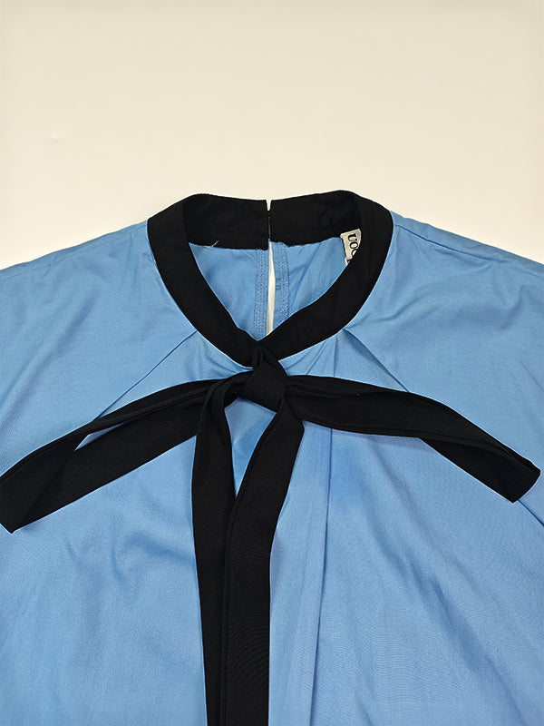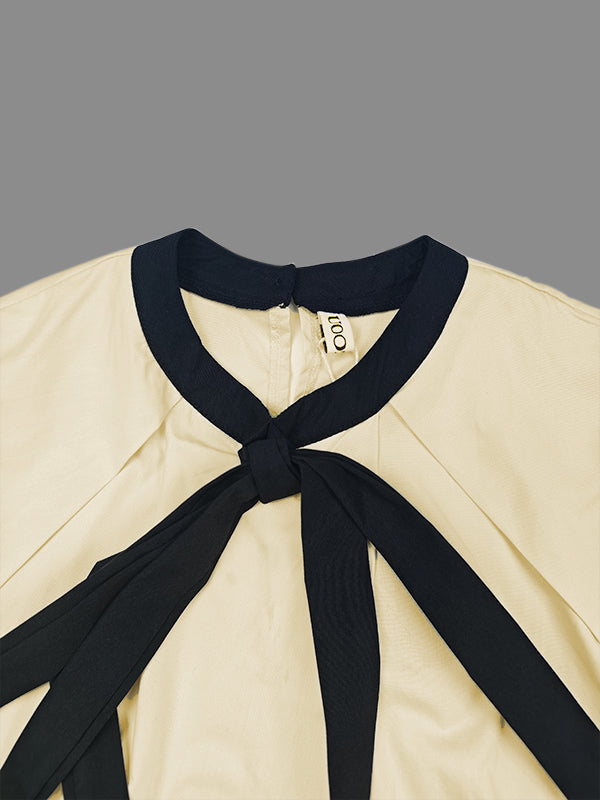 A-Line Loose Pleated Tied Round-Neck Midi Dresses