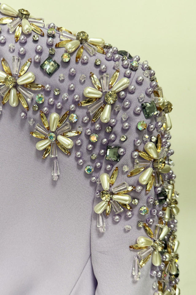 Crystal Embellishment, Bead Embellishment, V-Neck, Long Sleeves, Cut-out Detailing, Maxi Length.