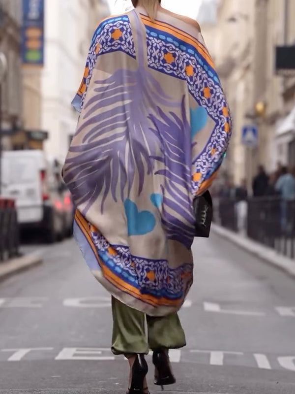 Batwing Sleeves Half Sleeves Contrast Color Printed One-shoulder Blouses&shirts Tops