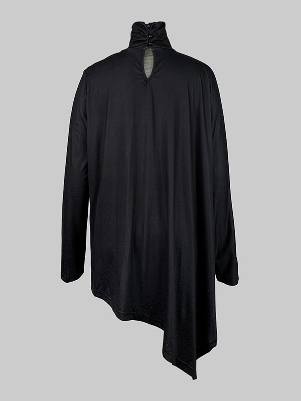 Batwing Sleeves Loose Asymmetric Floral Printed Split-Joint High Neck T-Shirts