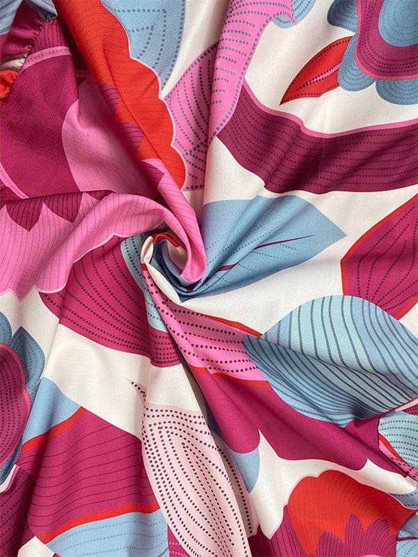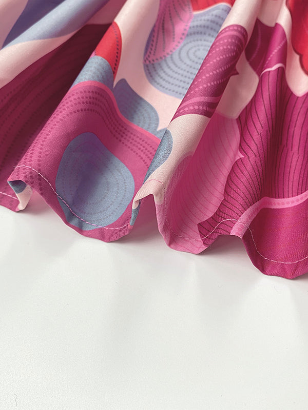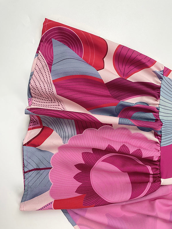 Batwing Sleeves Loose Flower Print Pleated Split-Joint Round-Neck Maxi Dresses