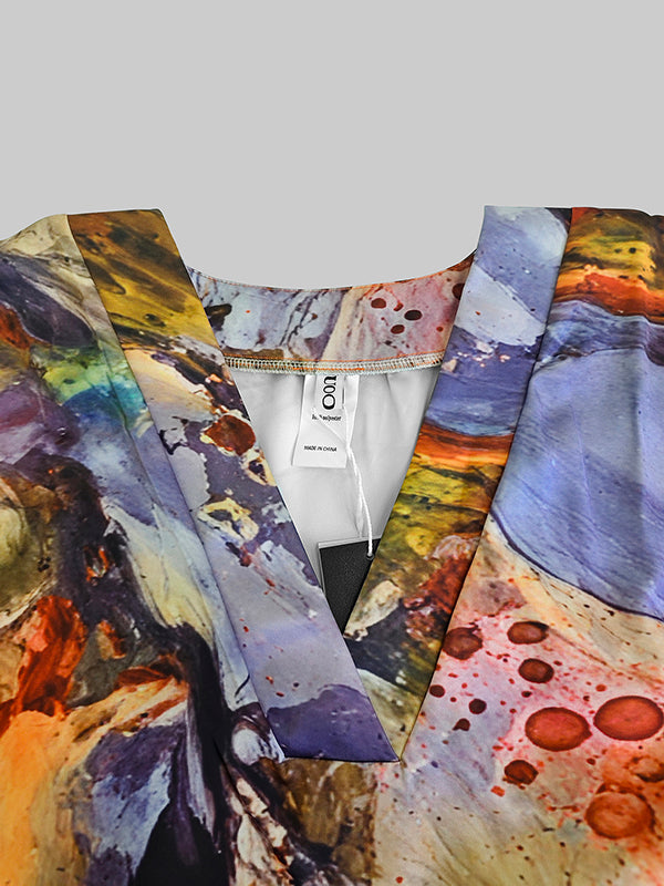 Batwing Sleeves Loose Gauze Printed Split-Joint V-Neck Maxi Dresses