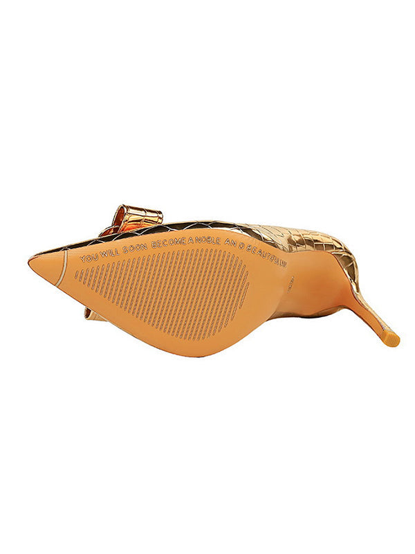 Belt Buckle Pointed-Toe Shiny Split-Joint Pumps