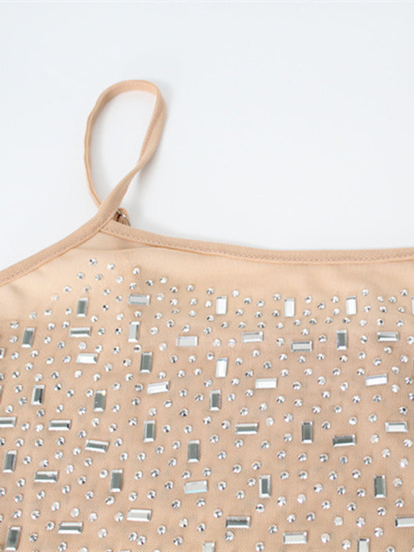 Bodycon Skinny See-Through Sequined Split-Joint Spaghetti-Neck Maxi Dresses