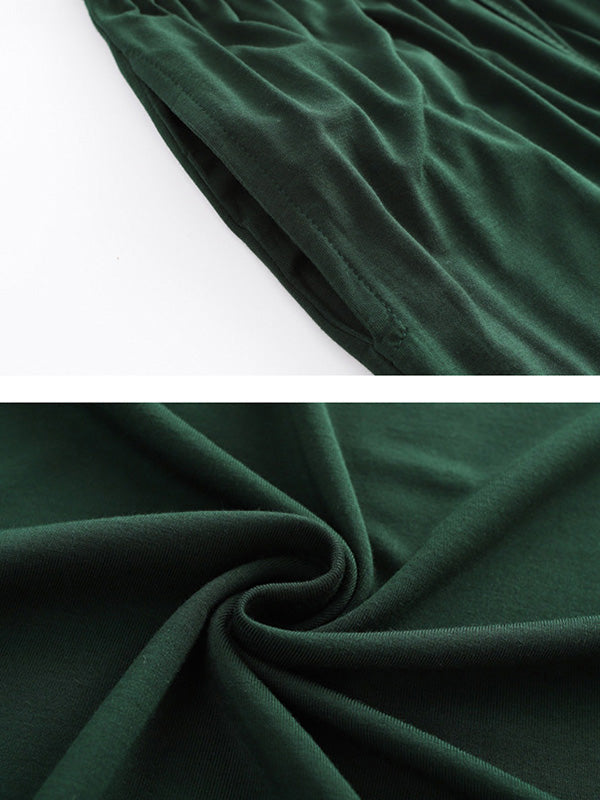 Casual Short Sleeves Solid Color V-Neck T Shirt Top&Drawstring Pants Pajamas Set
