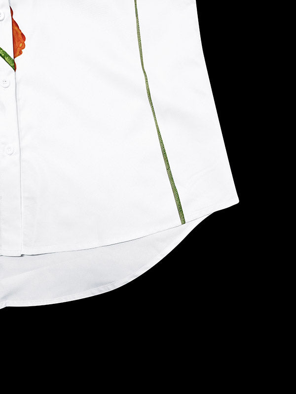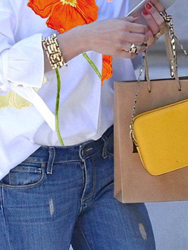 Flared Sleeves Long Sleeves Flower Print Split-Joint Tied Stand Collar Blouses&Shirts Tops