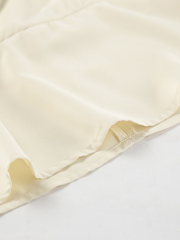 Flared Sleeves Long Sleeves Pleated Solid Color Zipper Stand Collar Blouses&Shirts Tops