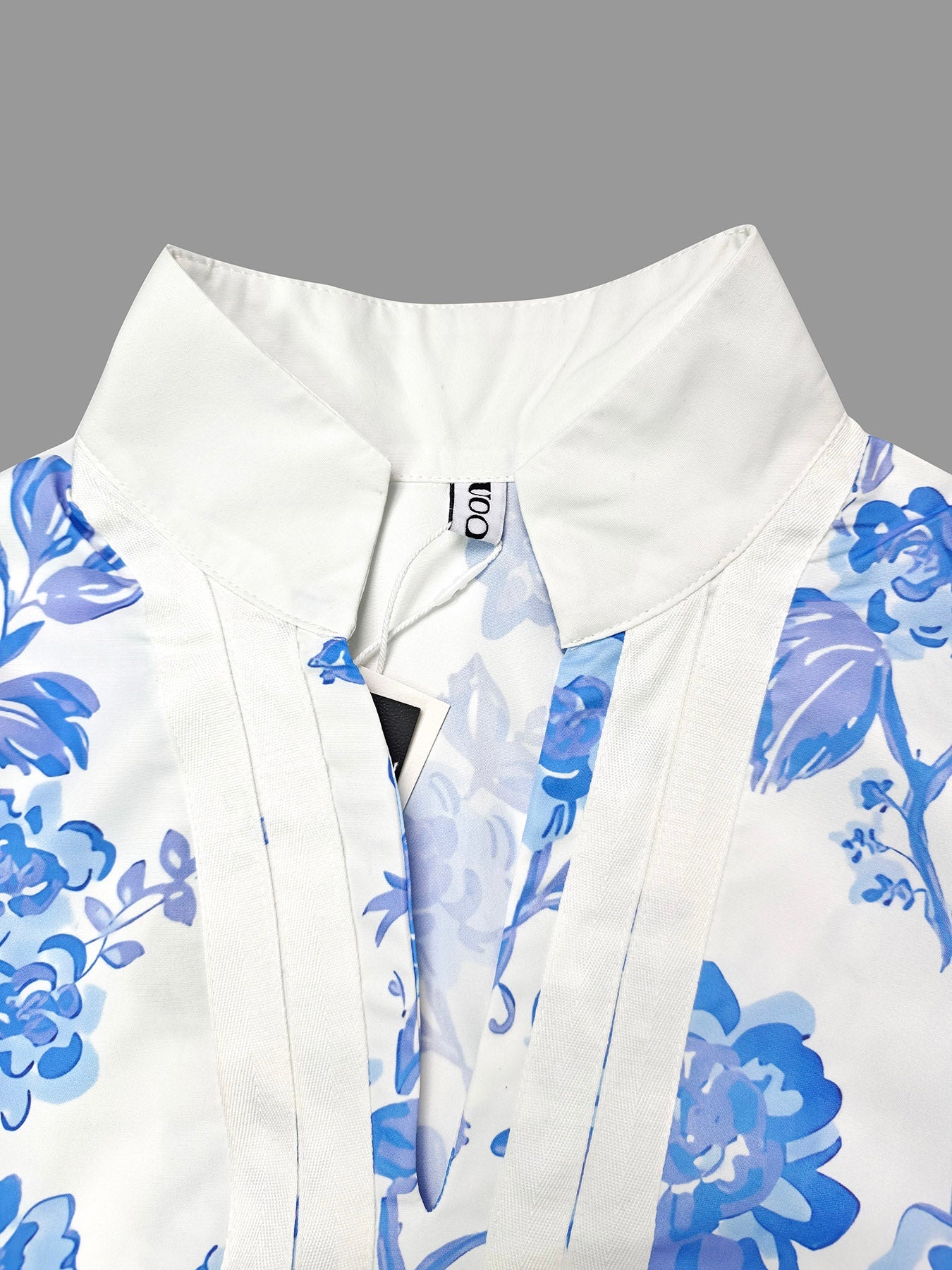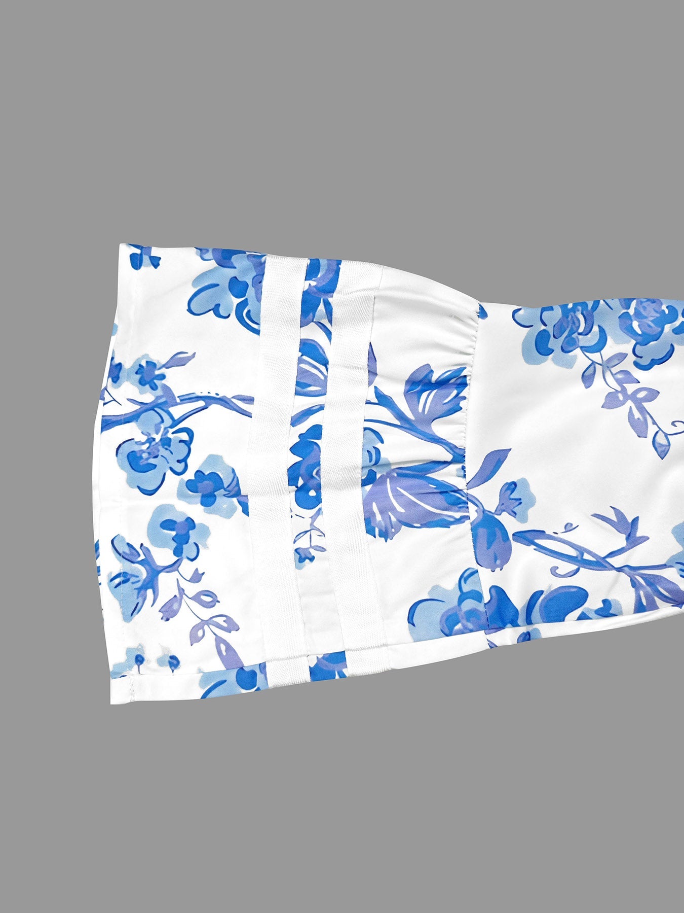 Flared Sleeves Loose Flower Print Split-Joint Split-side Deep V-Neck Midi Dresses