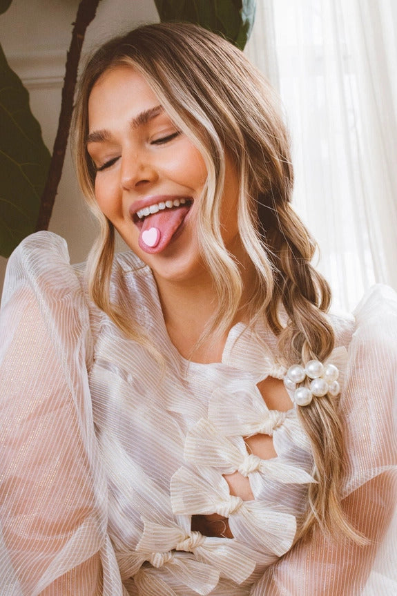 Upgrade your ponytail game with the Florence Chunky Pearl Ponytail holder. Featuring large pearls strung on a stretchy elastic, this chic ponytail accessory adds a fancy, sophisticated touch to even the simplest hairstyles. Easy to use and perfect for any occasion.