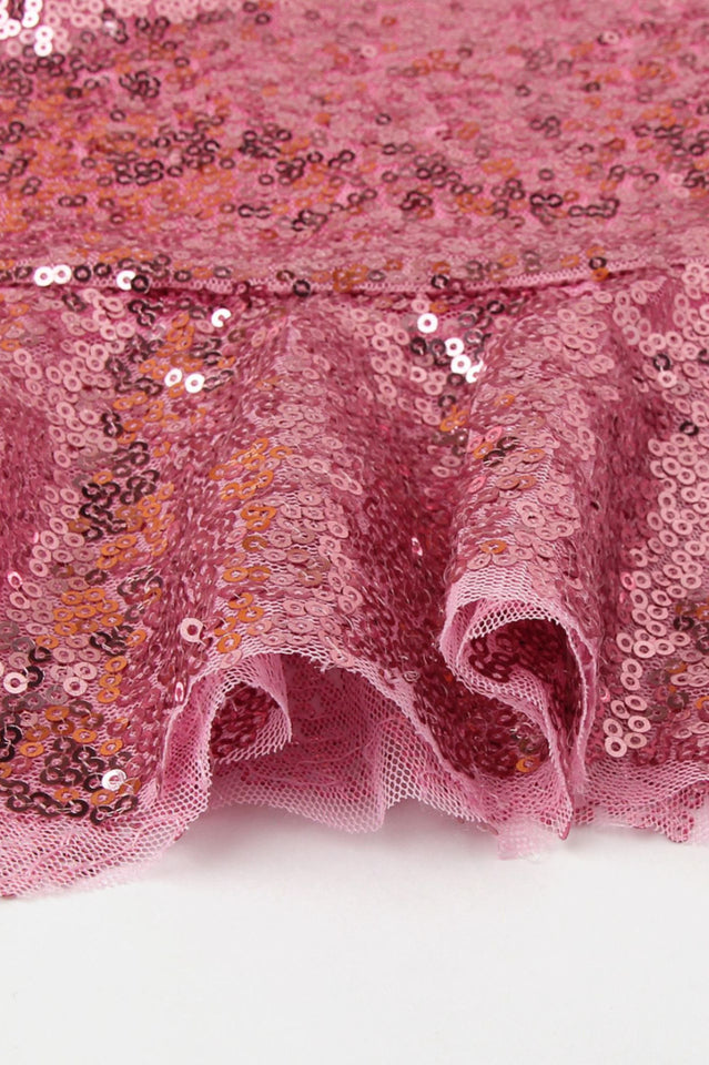 This dazzling sheath mini dress features delicate spaghetti straps and a form-fitting silhouette. Covered in shimmering sequins from top to bottom, it creates a glamorous and eye-catching look perfect for parties, evening events, or special occasions.