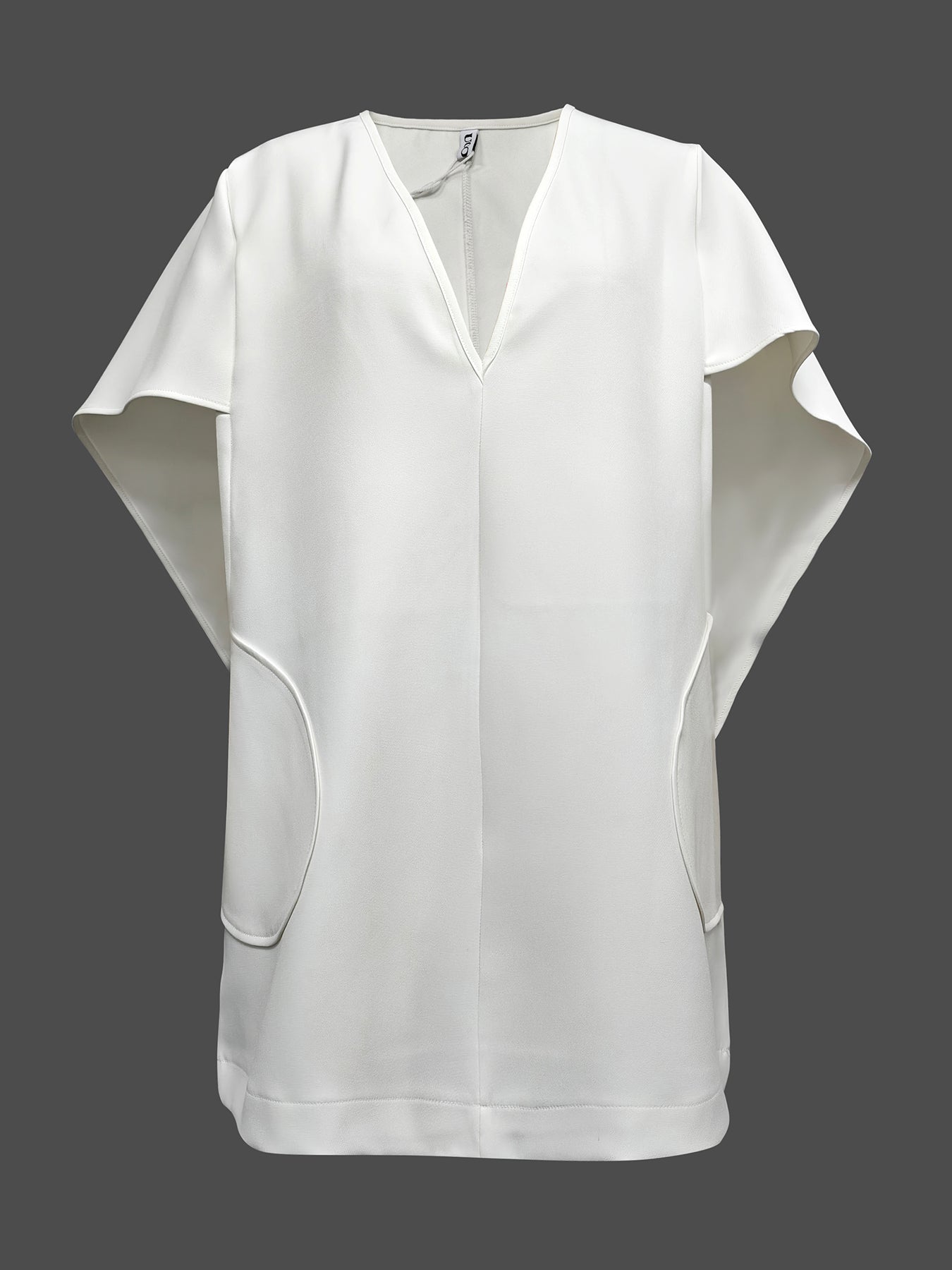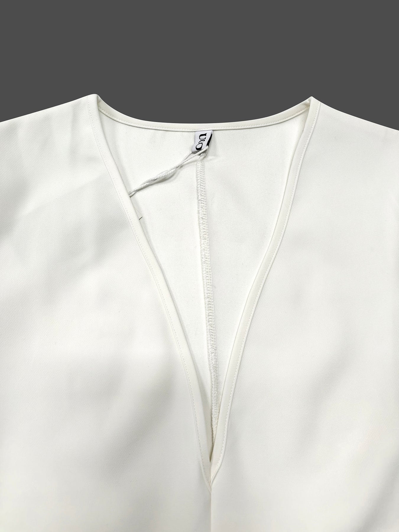 Half Sleeves Loose Solid Color Deep V-Neck Mini Dresses
