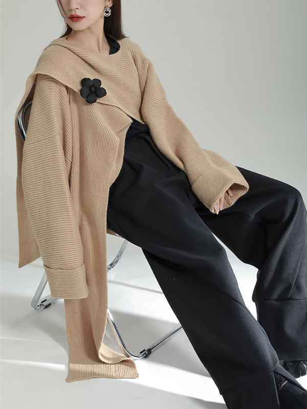 High-Low Long Sleeves Asymmetric Three-Dimensional Flower Round-Neck Cardigan Tops