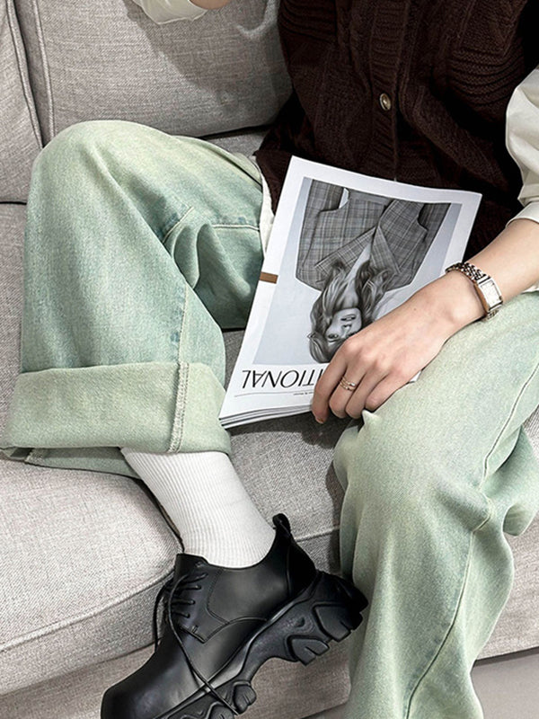High Waisted Loose No Belt Pockets Jean Pants Bottoms