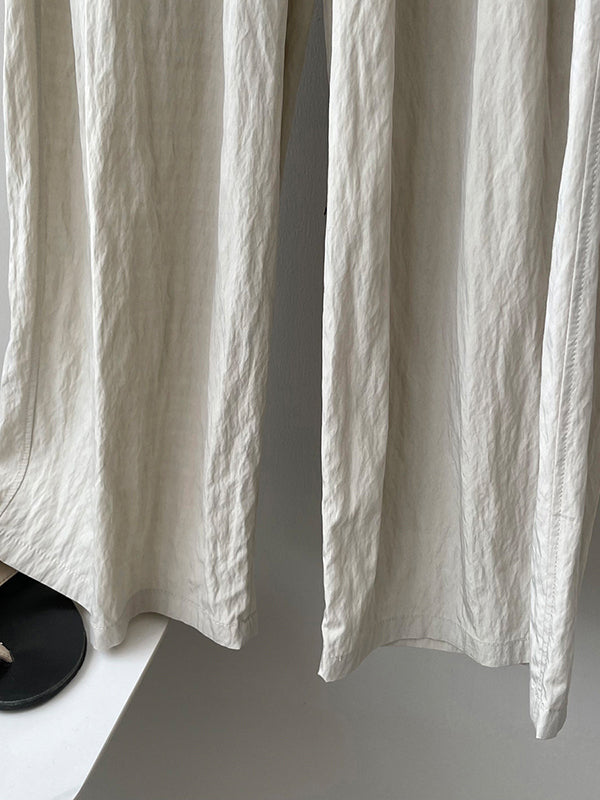 High Waisted Wide Leg Elasticity Pleated Solid Color Casual Pants Bottoms Trousers