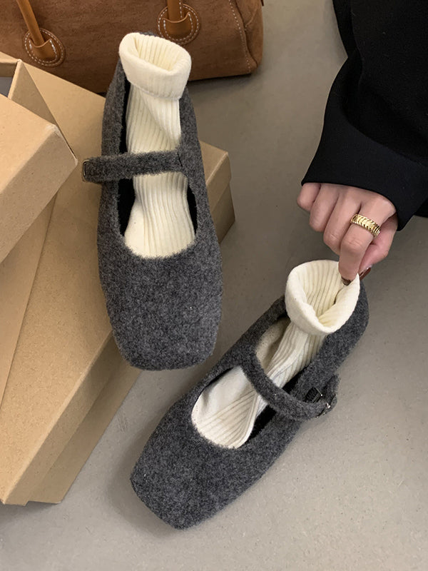 Hollow Shallow Cut Split-Joint Square-Toe Flat Shoes Mary Janes