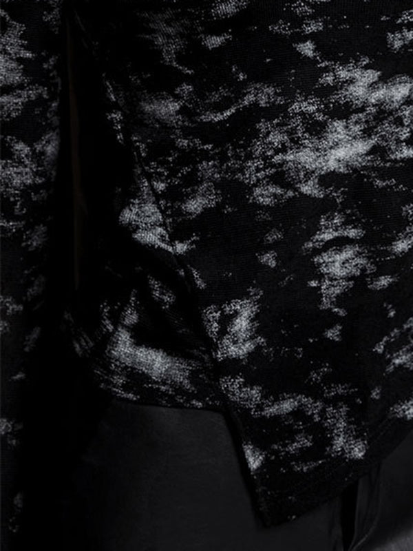 Irregularity Long Sleeves Asymmetric Graffiti Printed Mesh Split-Joint Round-Neck T-Shirts Tops