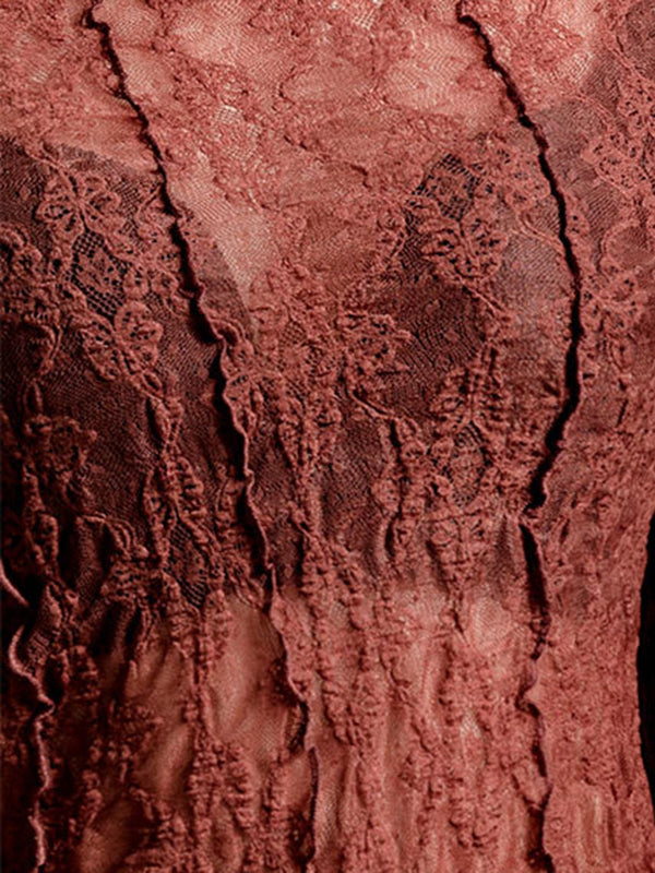Irregularity Long Sleeves See-Through Split-Joint Textured Round-Neck T-Shirts Tops