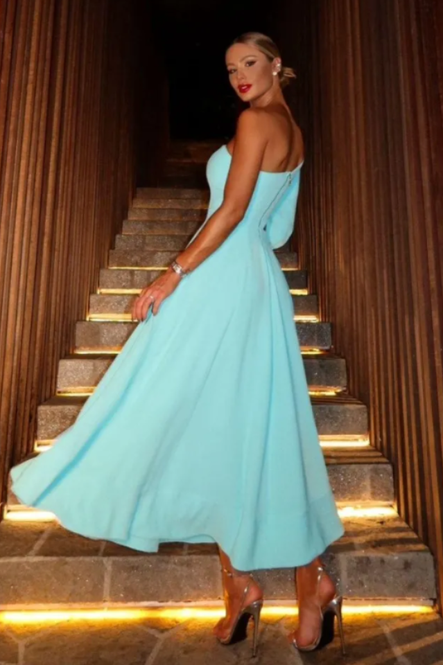 The Lea midi dress pairs a one-shoulder neckline with floral appliqué and playful cut-outs for breezy elegance. Perfect for beach wedding guest dresses, its flattering fit and airy design make it ideal for seaside vows or resort celebrations. A chic blend of romance and modernity, crafted to stand out under sunlit skies.