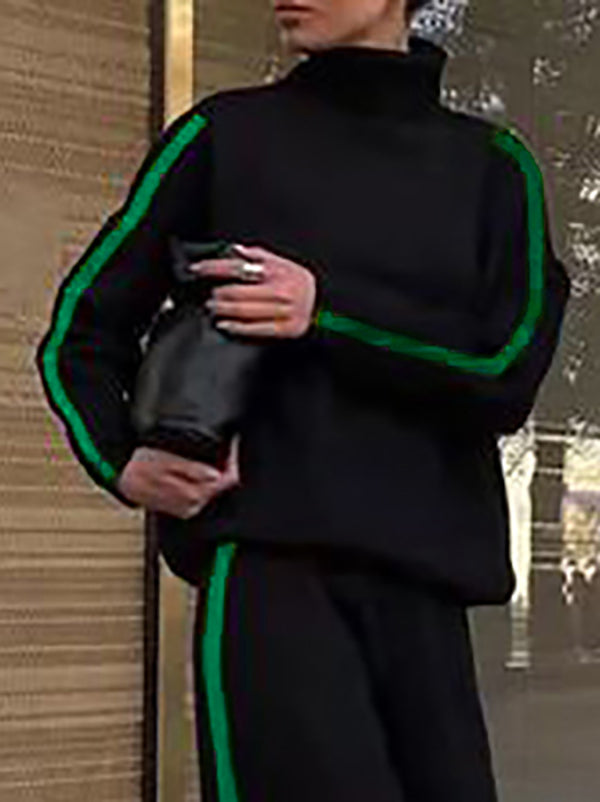 Long Sleeves Loose Buttoned Hollow Printed Split-Joint High Neck Sweatshirt Tops