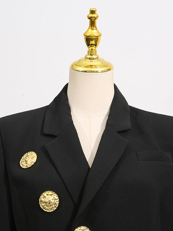 Long Sleeves Loose Buttoned Pockets Solid Color Notched Collar Blazer Outerwear