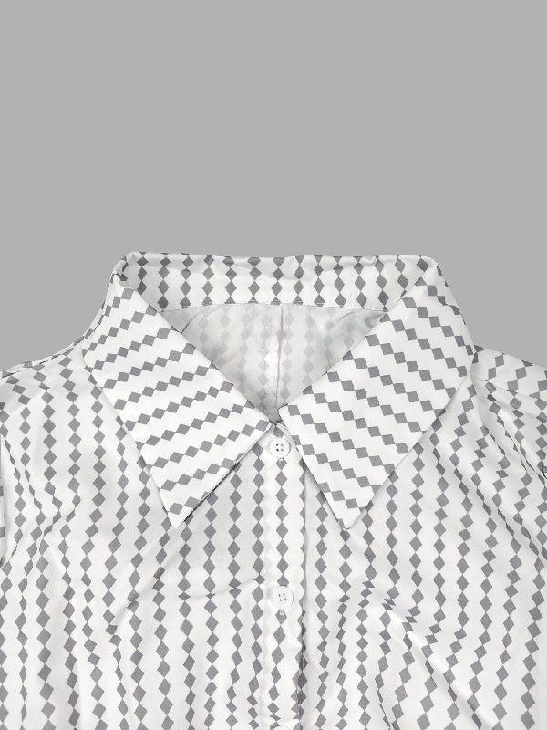 Long Sleeves Loose Buttoned Split-Side Striped Lapel Maxi Dresses Shirt Dress