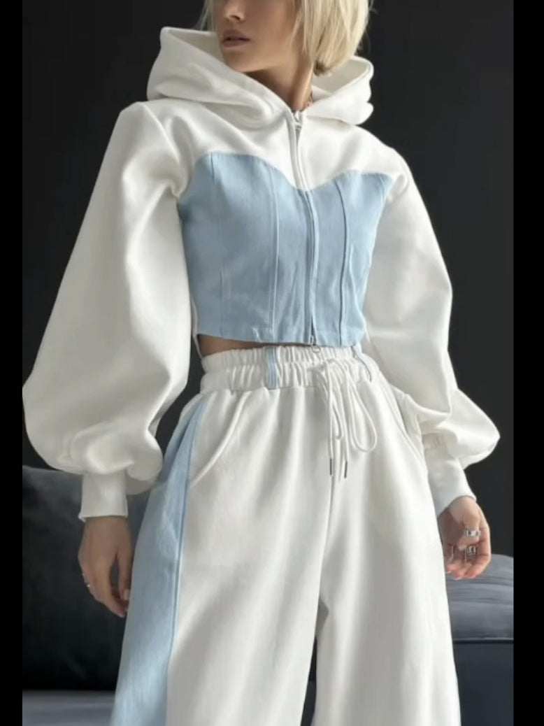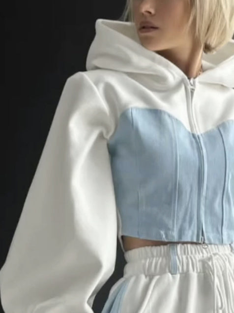 Long Sleeves Loose Split-Joint Zipper Hooded Outerwear