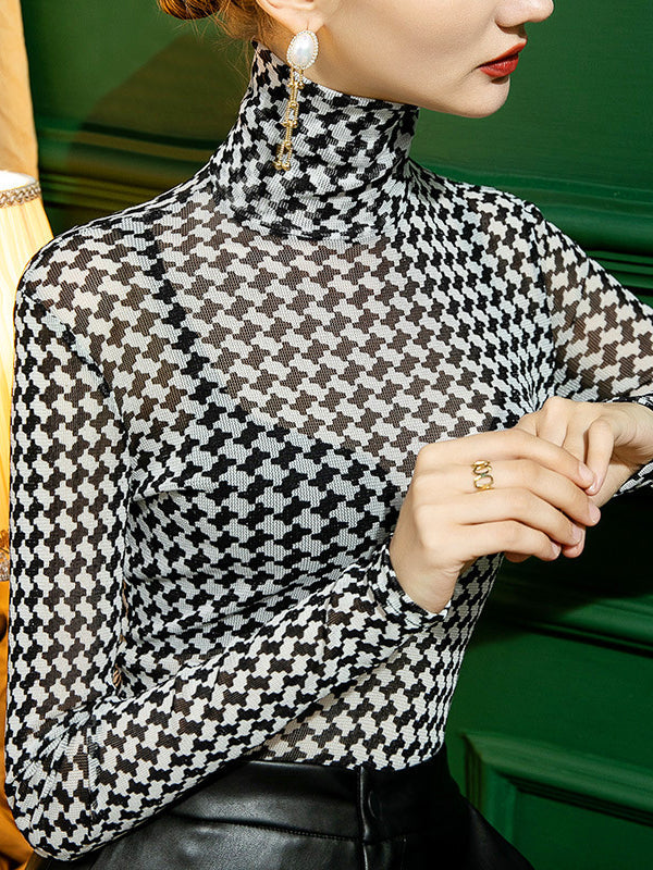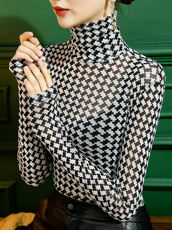 Long Sleeves Plus Size Contrast Color Split-Joint High Neck T-Shirts Tops