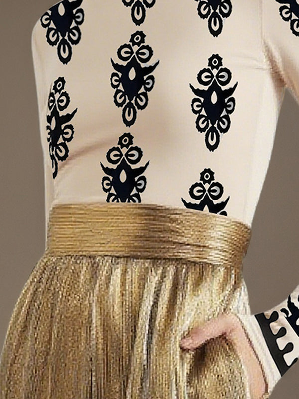 Long Sleeves Skinny Printed Split-Joint Round-Neck T-Shirts Tops